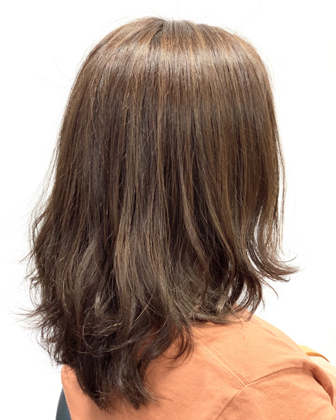 ベースの赤味を抑えつつ透け感をプラスしたヘアカラーにチェンジします。