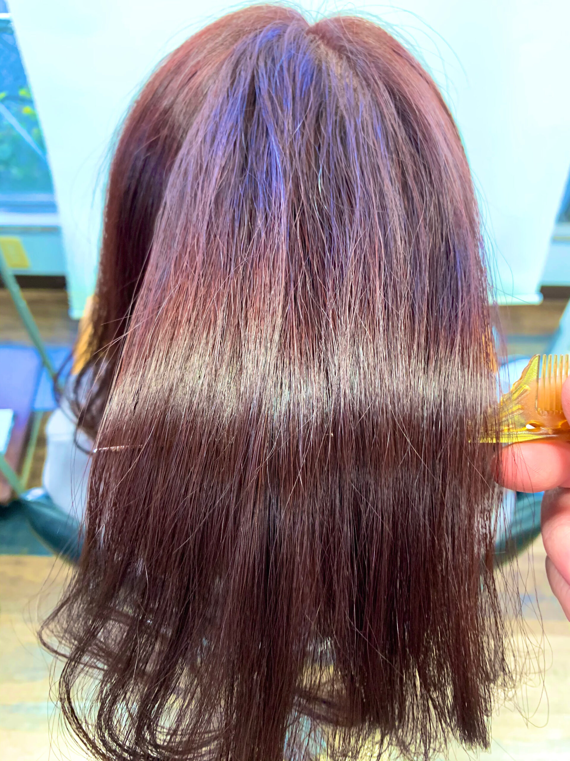 綺麗な暖色系カラーが発色しているのでシャンプーしてケアトリートメント。